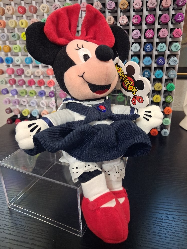 Minnie Mouse vintage plush toy, July Birth Stone. Approximately 5.5 inches tall sitting.